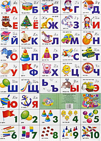 Настоящее издание представляет собой плакат с русским алфавитом и цифрами от 1 до 10 и картинками к ним.